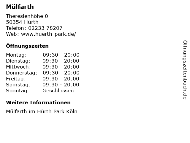 | Öffnungszeiten Mülfarth in Hürth anzeigen | |