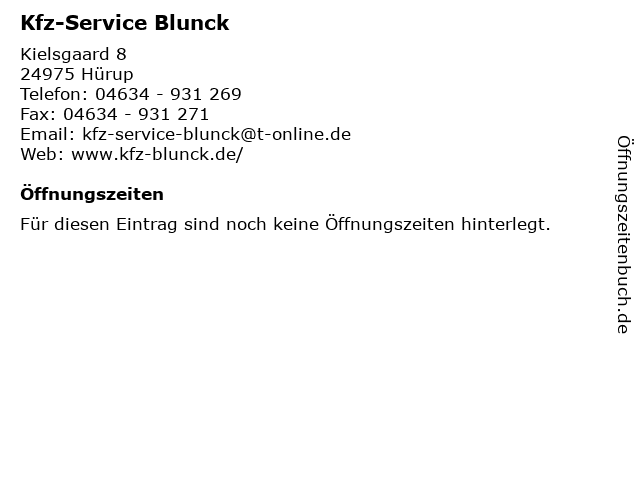 | Öffnungszeiten Kfz-Service Blunck in Hürup anzeigen | |