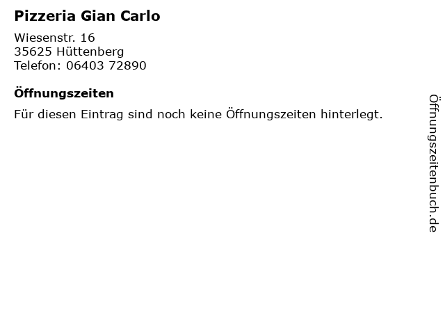 | Öffnungszeiten Pizzeria Gian Carlo in Hüttenberg anzeigen | |