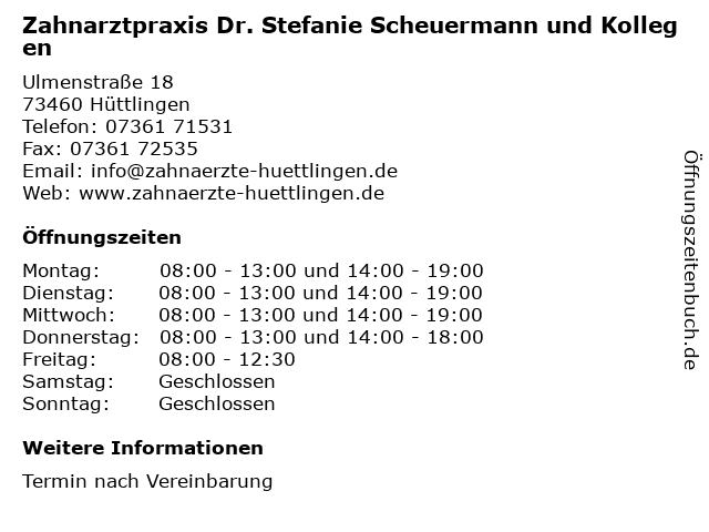 | Montag | 08:00-13:00 und 14:00-19:00 |