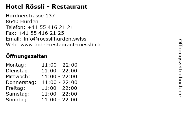| Öffnungszeiten Hotel Rössli - Restaurant in Hurden anzeigen | |