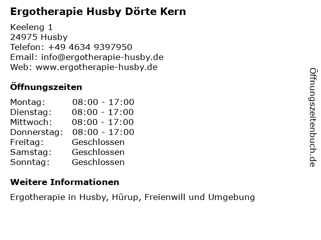 | Öffnungszeiten Ergotherapie Husby Dörte Kern in Husby anzeigen | |