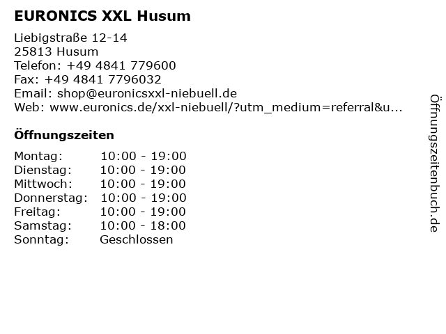 | Öffnungszeiten EURONICS XXL Husum in Husum anzeigen | |