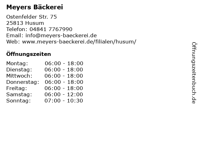 | Öffnungszeiten Meyers Bäckerei in Husum anzeigen | |