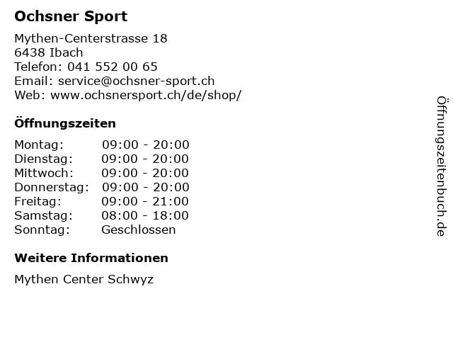 | Öffnungszeiten Ochsner Sport in Ibach anzeigen | |