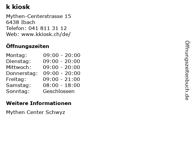 | Öffnungszeiten k kiosk in Ibach anzeigen | |