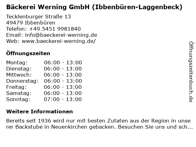 Branchen & Suchbegriffe zu Bäckerei Werning GmbH (Ibbenbüren-Laggenbeck):backkunst, backstube, backwaren, brot, brotspezialitäten, brötchen, bäcker, bäckerei, bäckerhandwerk, konditorei, kuchen, kuchenspezialitäten, laggenbeck, torten, werning |