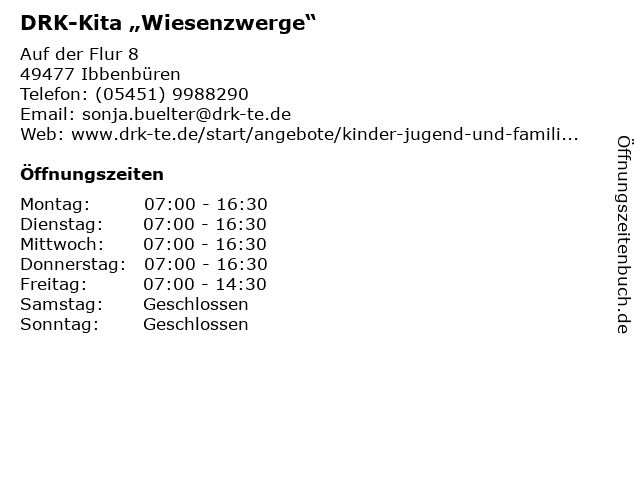 | Telefonnummer DRK-Kita „Wiesenzwerge“ in Ibbenbüren ((05451) 9988290) anrufen | |