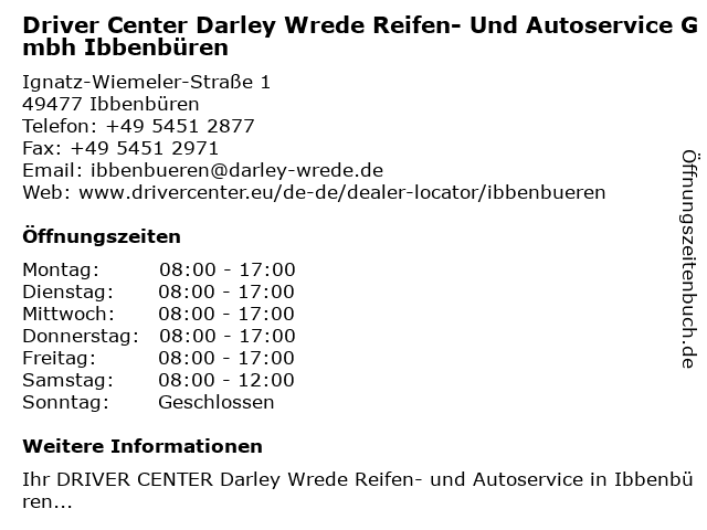 Branchen & Suchbegriffe zu Driver Center Darley Wrede Reifen- Und Autoservice Gmbh Ibbenbüren:autoservice, center, darley, driver, felgen, kfz-zubehör, reifen, reifeneinlagerung, reifenwechsel, saisonwechsel, schläuche, wrede |