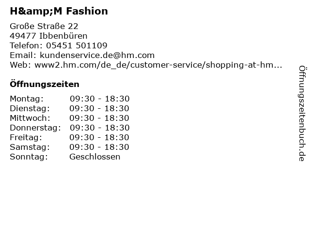 | Telefonnummer H&M Fashion in Ibbenbüren (05451 501109) anrufen | |