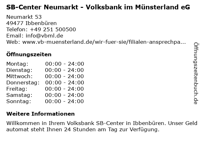 Branchen & Suchbegriffe zu SB-Center Neumarkt - Volksbank im Münsterland eG:bank, center, eg, geldautomat, münsterland, sb, volksbank |