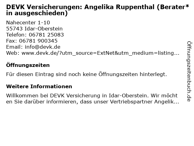 | DEVK Versicherungen: Angelika Ruppenthal (Berater*in ausgeschieden) anrufen | |