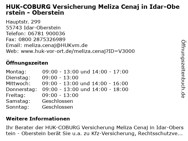 Branchen & Suchbegriffe zu HUK-COBURG Versicherung Meliza Cenaj in Idar-Oberstein - Oberstein:altersvorsorge, autoversicherung, berufsunfähigkeitsversicherung, cenaj, coburg, gebäude- und hausratsversicherung, huk, kfz-versicherung (motorrad), meliza, oberstein, tierversicherung, versicherung, zahnmedizinische versicherung |