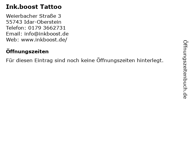 | Öffnungszeiten Ink.boost Tattoo in Idar-Oberstein anzeigen | |