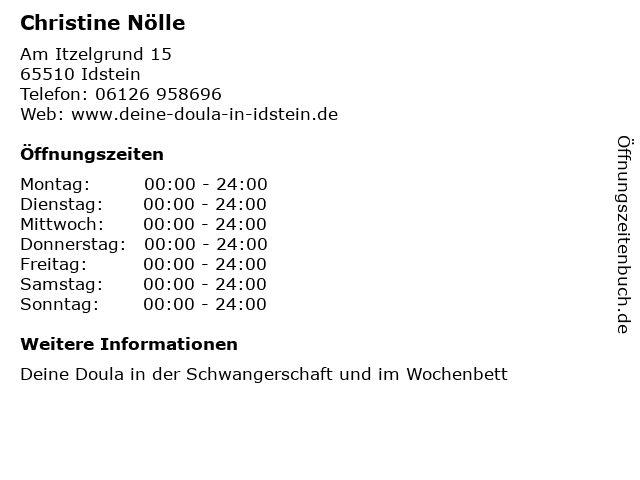 | Öffnungszeiten Christine Nölle in Idstein anzeigen | |
