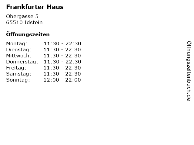 | Öffnungszeiten Frankfurter Haus in Idstein anzeigen | |