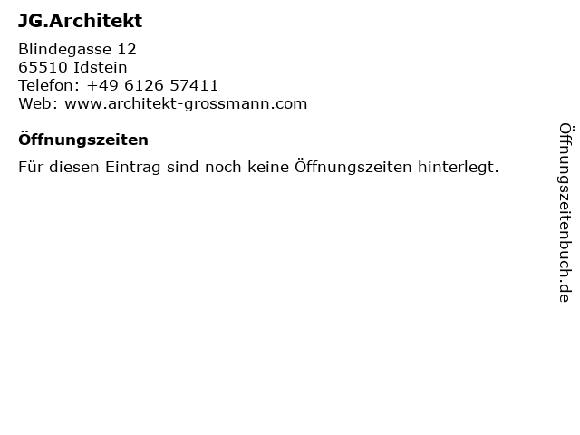 | Öffnungszeiten JG.Architekt in Idstein anzeigen | |