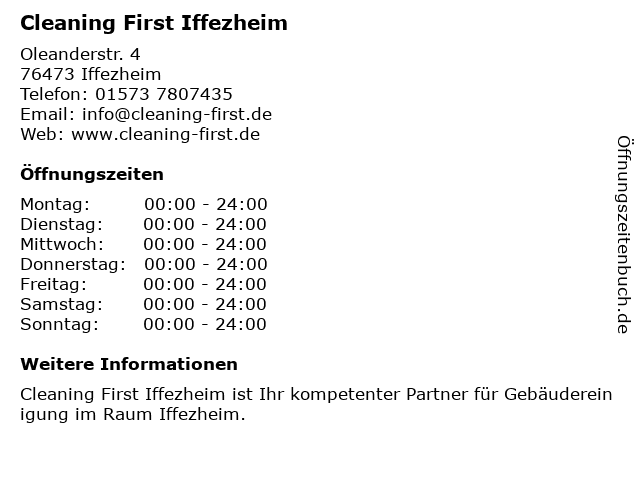 | Öffnungszeiten Cleaning First Iffezheim in Iffezheim anzeigen | |