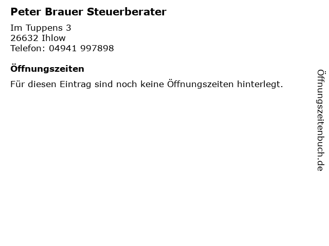 | Öffnungszeiten Peter Brauer Steuerberater in Ihlow anzeigen | |