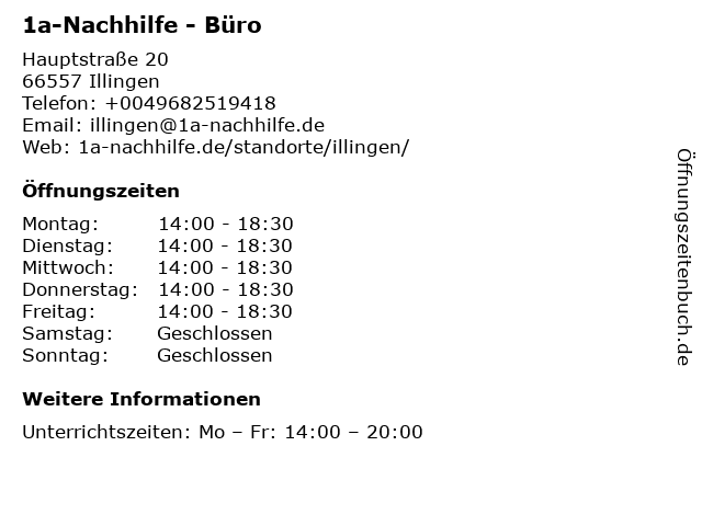 | Öffnungszeiten 1a-Nachhilfe - Büro in Illingen anzeigen | |