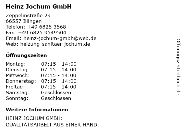 | Öffnungszeiten Heinz Jochum GmbH in Illingen anzeigen | |