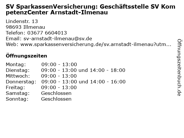 Branchen & Suchbegriffe zu SV SparkassenVersicherung: Geschäftsstelle SV KompetenzCenter Arnstadt-Ilmenau:geschäftsstelle, kompetenzcenter, sparkassenversicherung, sv |