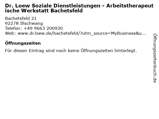 | Dr. Loew Soziale Dienstleistungen - Arbeitstherapeutische Werkstatt Bachetsfeld anrufen | |