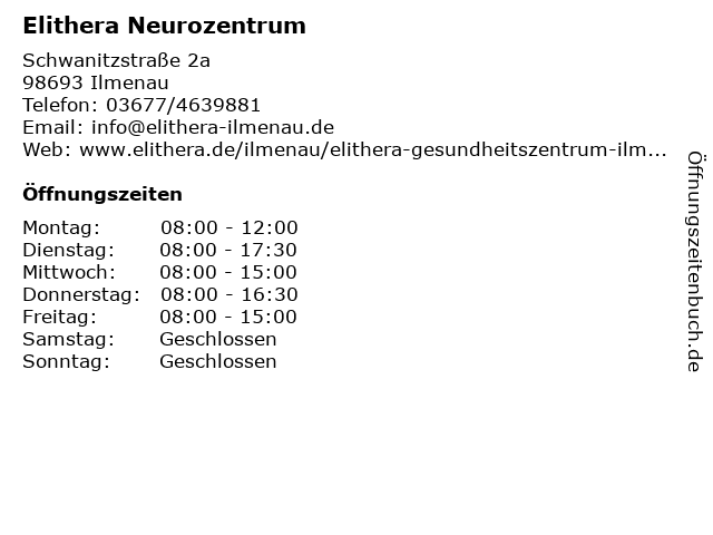 | Öffnungszeiten Elithera Neurozentrum in Ilmenau anzeigen | |
