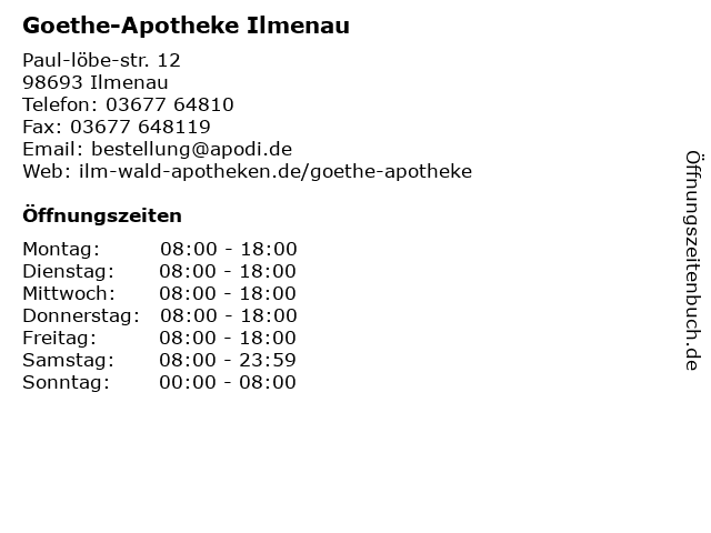 Öffnungszeiten Goethe-Apotheke Ilmenau