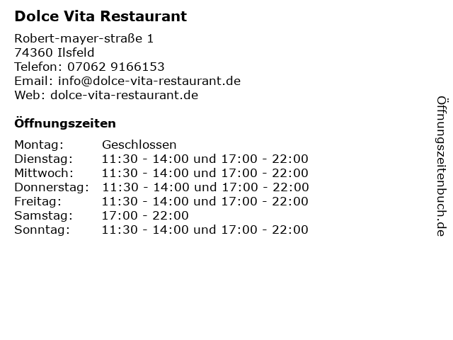 | Öffnungszeiten Dolce Vita Restaurant in Ilsfeld anzeigen | |