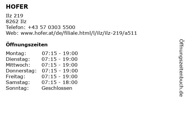| Öffnungszeiten HOFER in Ilz anzeigen | |