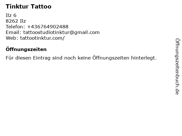 | Öffnungszeiten Tinktur Tattoo in Ilz anzeigen | |