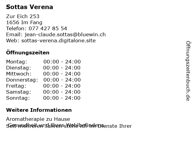 | Öffnungszeiten Sottas Verena in Im Fang anzeigen | |