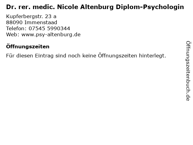 | Dr. rer. medic. Nicole Altenburg Diplom-Psychologin anrufen | |