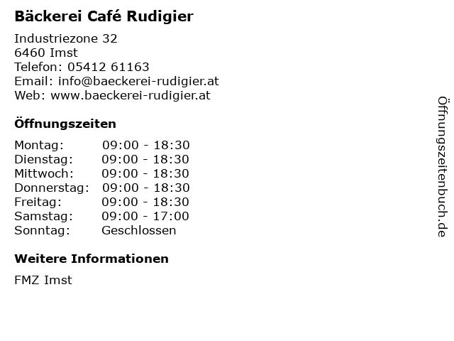 | Öffnungszeiten Bäckerei Café Rudigier in Imst anzeigen | |
