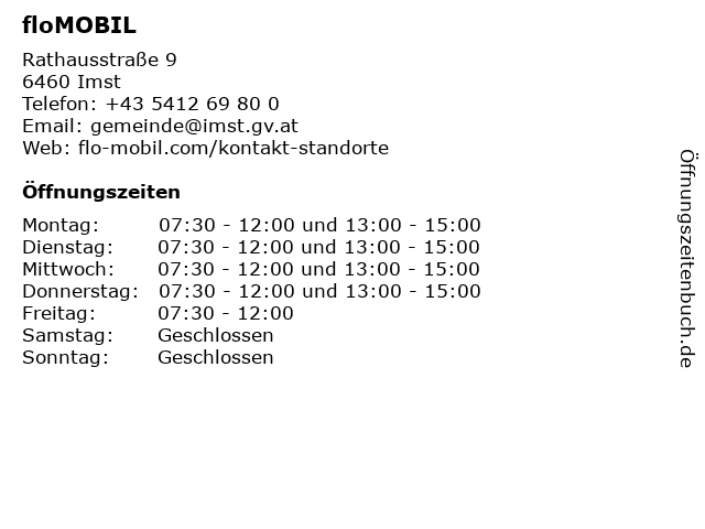 | Öffnungszeiten floMOBIL in Imst anzeigen | |
