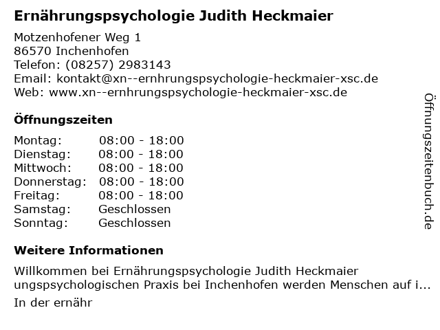 Branchen & Suchbegriffe zu Ernährungspsychologie Judith Heckmaier:abnehmen, beratung zum essverhalten, ernährungscoach, ernährungspsychologie, ernährungspsychologin, gewichtsreduktion, heckmaier, judith, psychologische beratung, selbstbewusstseinsaufbau |