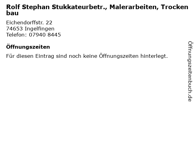 | Rolf Stephan Stukkateurbetr., Malerarbeiten, Trockenbau anrufen | |