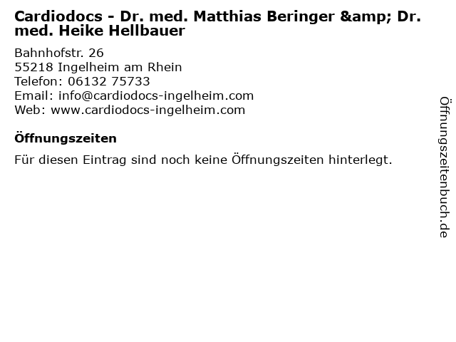 1 Dr. med. Matthias Beringer - Facharzt für Innere Medizin – Kardiologie (Entfernung: 0,01 km) Bahnhofstr. 26, 55218 Ingelheim 6 |