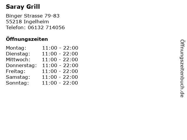 | Öffnungszeiten Saray Grill in Ingelheim anzeigen | |