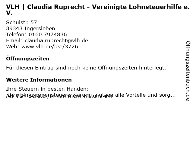 | VLH | Claudia Ruprecht - Vereinigte Lohnsteuerhilfe e.V. anrufen | |