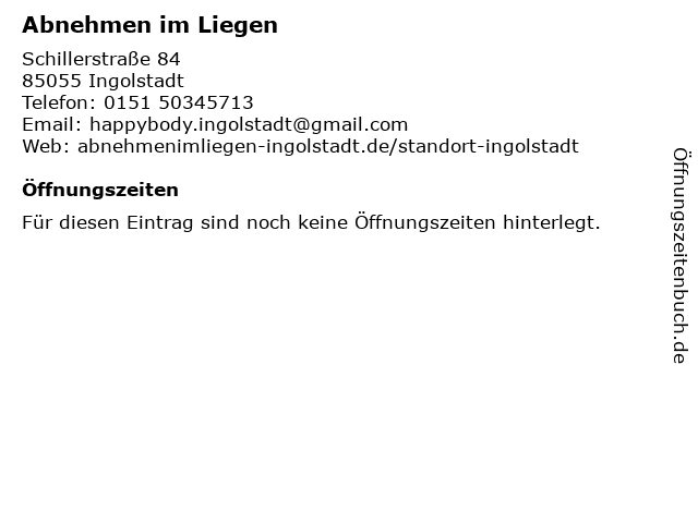 | Öffnungszeiten Abnehmen im Liegen in Ingolstadt anzeigen | |