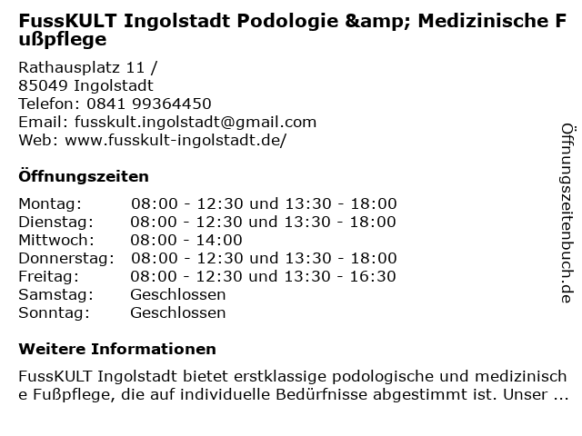 Branchen & Suchbegriffe zu FussKULT Ingolstadt Podologie & Medizinische Fußpflege:fusskult, fußpflege, medizinische, podologie |
