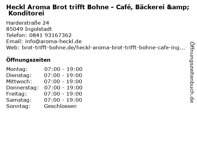1 Heckl Aroma Brot trifft Bohne - Café, Bäckerei & Konditorei (Entfernung: 5,46 km) Nürnberger Straße 22, 85101 Lenting 6 Willibald Neumayer Bäckerei und Konditorei (Entfernung: 8,30 km) Regensburger Str. 16, 85098 Großmehring |