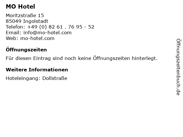 | Öffnungszeiten MO Hotel in Ingolstadt anzeigen | |