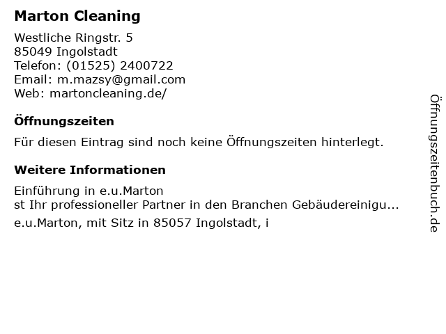 | Öffnungszeiten Marton Cleaning in Ingolstadt anzeigen | |