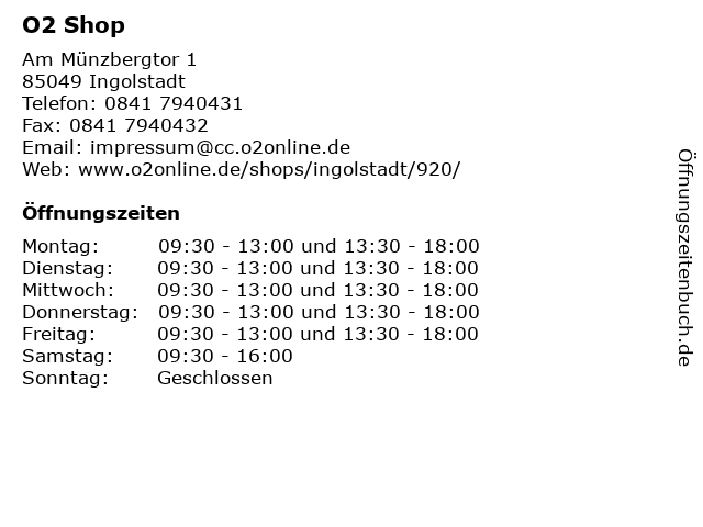 | Öffnungszeiten O2 Shop in Ingolstadt anzeigen | |
