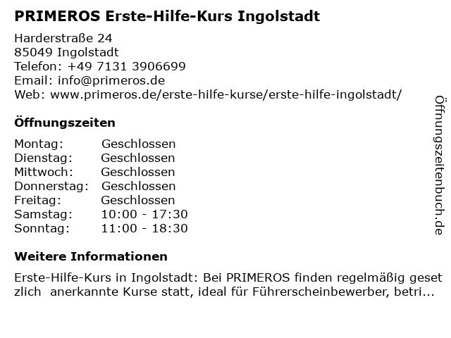 Branchen & Suchbegriffe zu PRIMEROS Erste-Hilfe-Kurs Ingolstadt:erste, erste hilfe am unfallort, erste hilfe kurs, erste-hilfe, erste-hilfe-kurs, führerschein sehtest, herz-lungen-wiederbelebung, herzinfarkt, hilfe, kurs, primeros, schlaganfall, stabile seitenlage, verbandmaterial, weiterbildung |