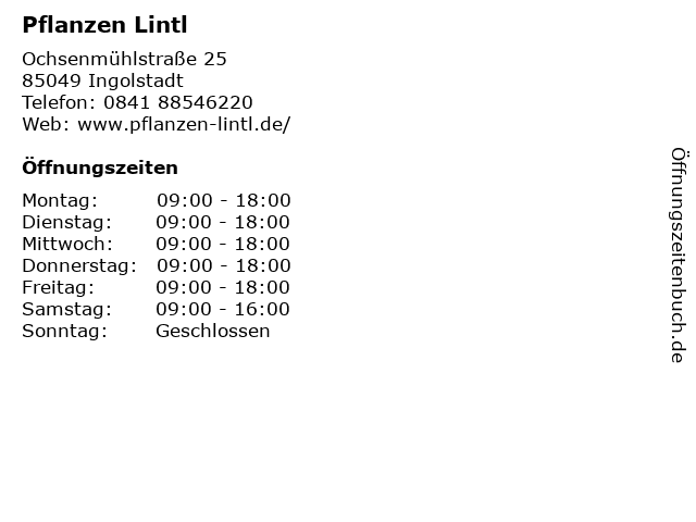 | Öffnungszeiten Pflanzen Lintl in Ingolstadt anzeigen | |