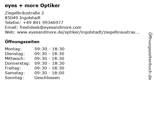 | Öffnungszeiten eyes + more Optiker in Ingolstadt anzeigen | |